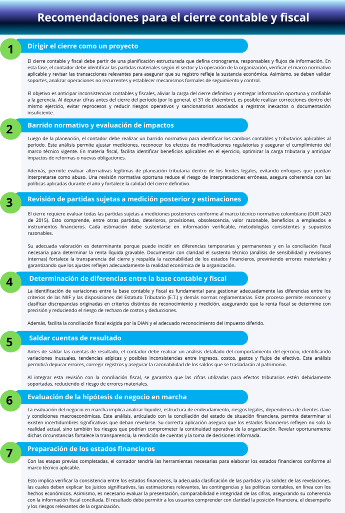 En un entorno normativo cambiante y con una fiscalización cada vez más exigente, estas recomendaciones deben incorporarse en la operación diaria y traducirse en controles internos efectivos. El cierre contable y fiscal no es un trámite anual: es una decisión estratégica que protege la confiabilidad de la información, fortalece el cumplimiento, gestiona riesgos y respalda la toma de decisiones, asegurando precisión y razonabilidad en las cifras reportadas.
