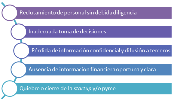 Las consecuencias negativas de un mal gobierno corporativo acaban costando más multas, condenas, prisión, mala reputación por acciones indebidas, e inclusive pueden acabar con la desaparición de la startup y/o pymes. A continuación, se mencionarán las principales consecuencias de un mal gobierno o su ausencia en startups y pymes: