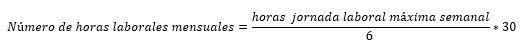Donde a su vez, el número de horas laborales mensuales se calculan así: