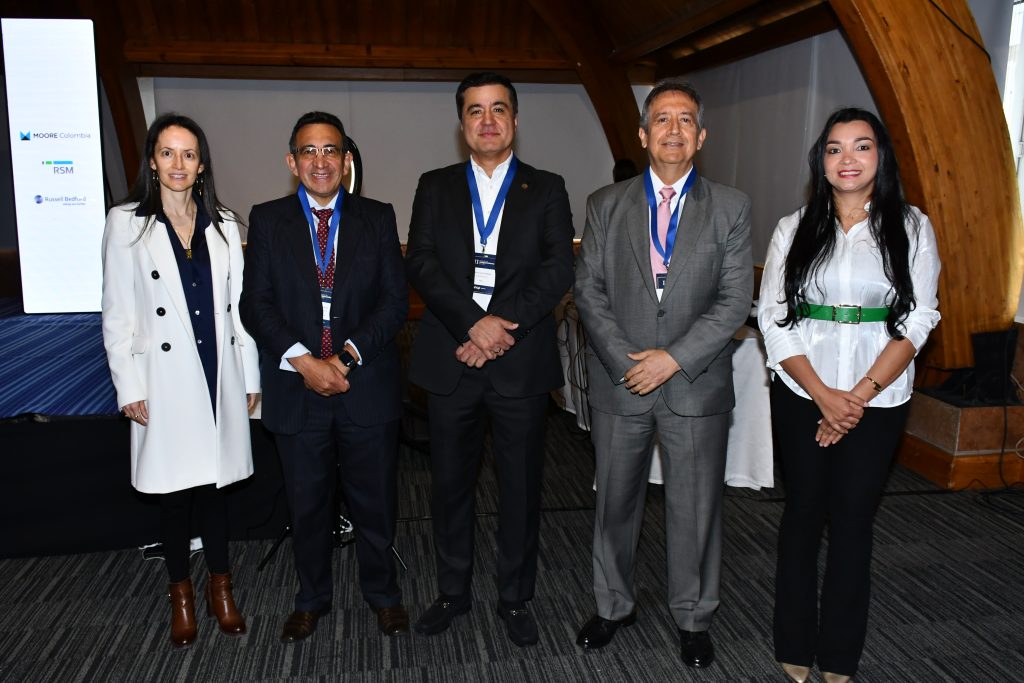 Panelistas, de izquierda a derecha: Lucinda Diaz, representante de la Superintendencia Financiera de Colombia; Frankly Manuel Rodríguez Ramírez, miembro del Grupo de Regulación e Investigación Contable de la Superintendencia de Sociedades; Daniel Sarmiento, socio director de ACS, firma miembro de SMS Latinoamérica; Óscar Hernando Torres Mendoza, socio director de America Advising & Auditing Services; Jacqueline Peña, socia de Auditoría en PwC.