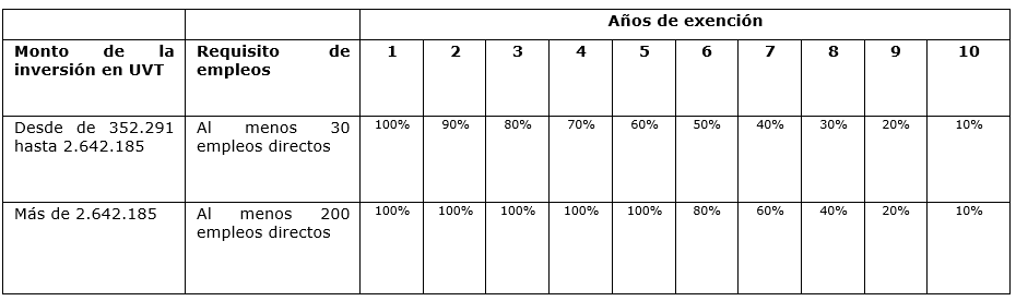 Incentivos tributarios: exención progresiva de hasta el 100 % del ICA por hasta diez años para quienes no hayan sido contribuyentes de este impuesto siempre que realicen grandes inversiones de activos fijos productivos y presenten sus proyectos antes del 30 de junio de 2030. El Distrito Capital reglamentará el procedimiento para presentar los proyectos de inversión.